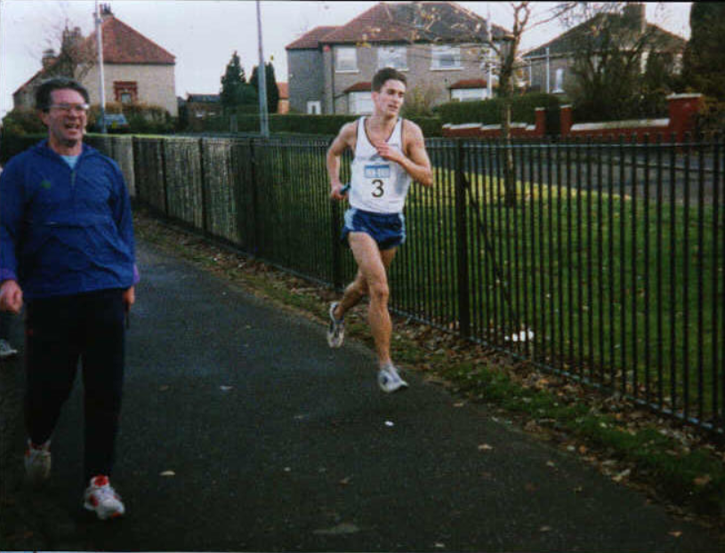 Iain joined the club in 1989 when the Boys age groups were particularly strong. Bobby Harris, Jamie Hood, Alan Moore, Robert Emmanuel, Ronnie Armstrong and others made at least two strong teams for any race over the country and gave Derek real difficulty in selecting track and field teams. It is maybe salutary to note that although they all rendered sterling service to the club, Iain is the only one still running and racing in the 21st century. Not as obvious as some of the others, but Iain was a natural runner who developed at his own pace – we all mature at different ages – to become a medal and championship winner at GB AAA’s level. He was a good team member who turned out in almost every event that the club contested, track and country, and added to club successes at the time. However, as he says in his reply above, he drifted away from the sport while he was studying at school and university. There was also the factor that some of his friends in the club as boys had also left for a variety of reasons and several scattered to other areas for tertiary education – at least one went to Aberdeen and took up boxing as a sport, another to Dundee where ski boarding became a big part of his free time. We take up our look at Iain’s career after he returned and was competing as a senior man.