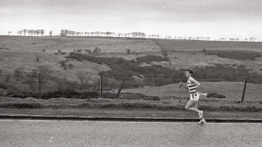 Many runners, clubmen and supporters concentrated on the long leg (six), the champions leg (two) and maybe four – but then the first stage was vital if you were gpoing to be a contestant, and three was one where a lot of ground could be lost on what was the shortest leg of the race – very few looked at five in any detail. The fifth stage was fairly long (5 miles plus) but was without any doubt the most exposed of them all. If there was a wind, you got it all the way, and in one year there was a bit of a gale blowing and I remember getting in to the bus at the end of the stage followed by a student from one of the university teams gasping, “That wind! Oh! That wind. What a wind. Oh that wind!” When it snowed, as it did at least once, the leg was one of the toughest any of us had experienced.